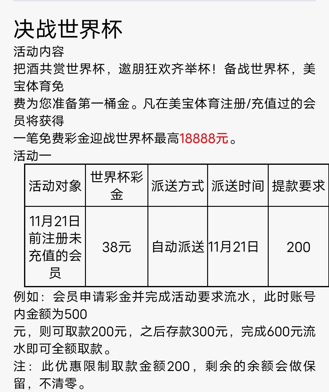 新用户注册绑卡等11.21号自动派送38彩金满200即可提现。