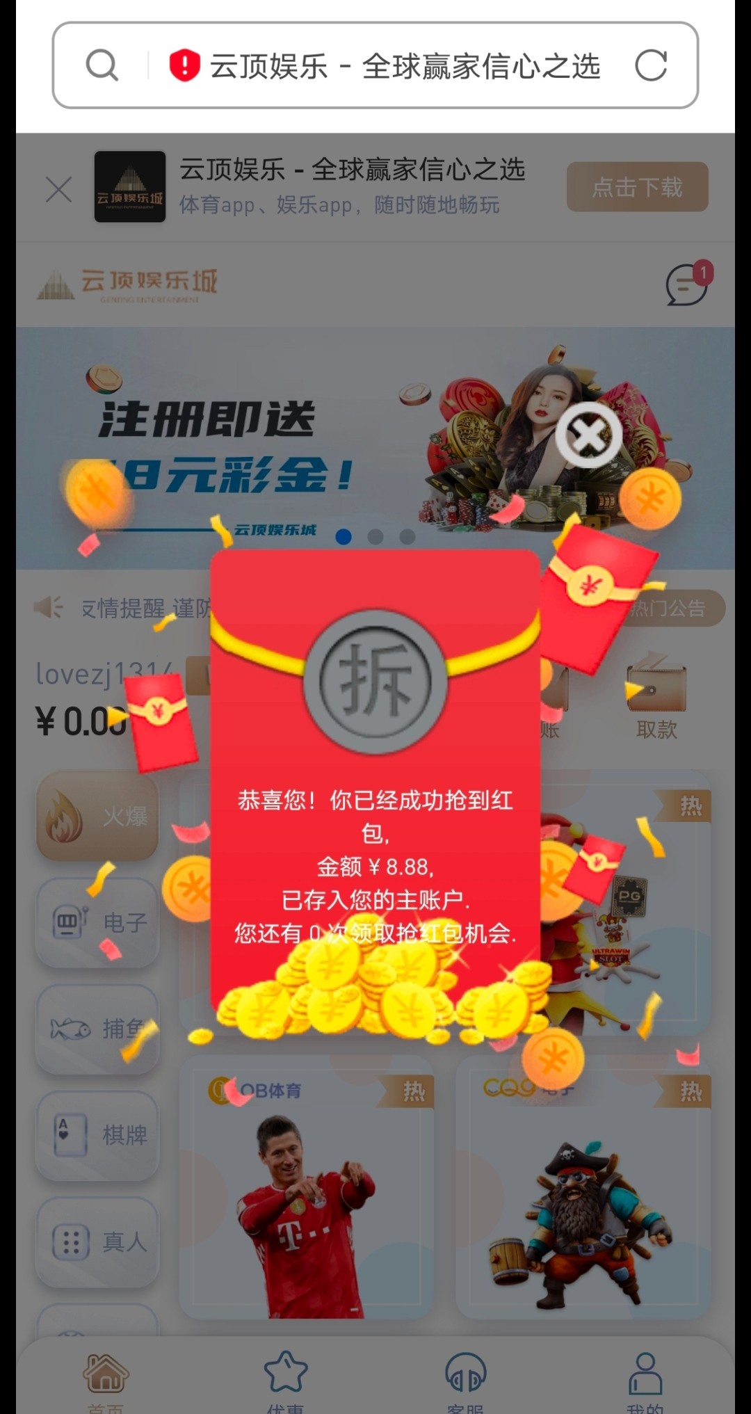 活动:老用户登入主页右下角有个红包好像都是8.88 没有就无视