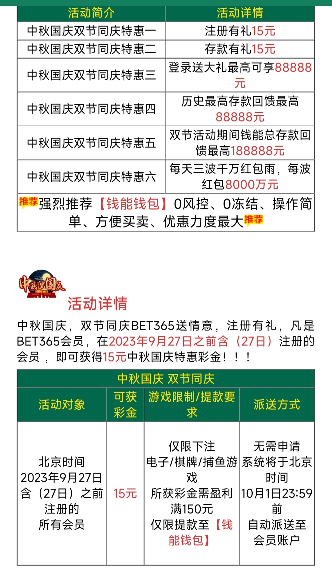 老用户中秋节期间回馈15,详细介绍看活动。