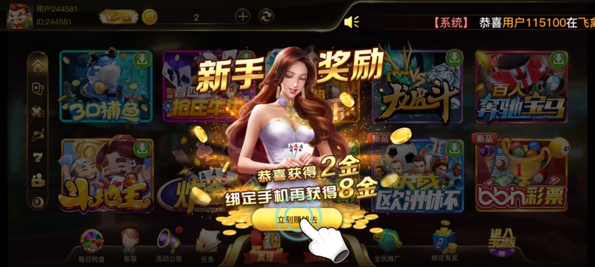 新用户秒注册送十块钱陪玩捕鱼打到20块钱就可以玩其他