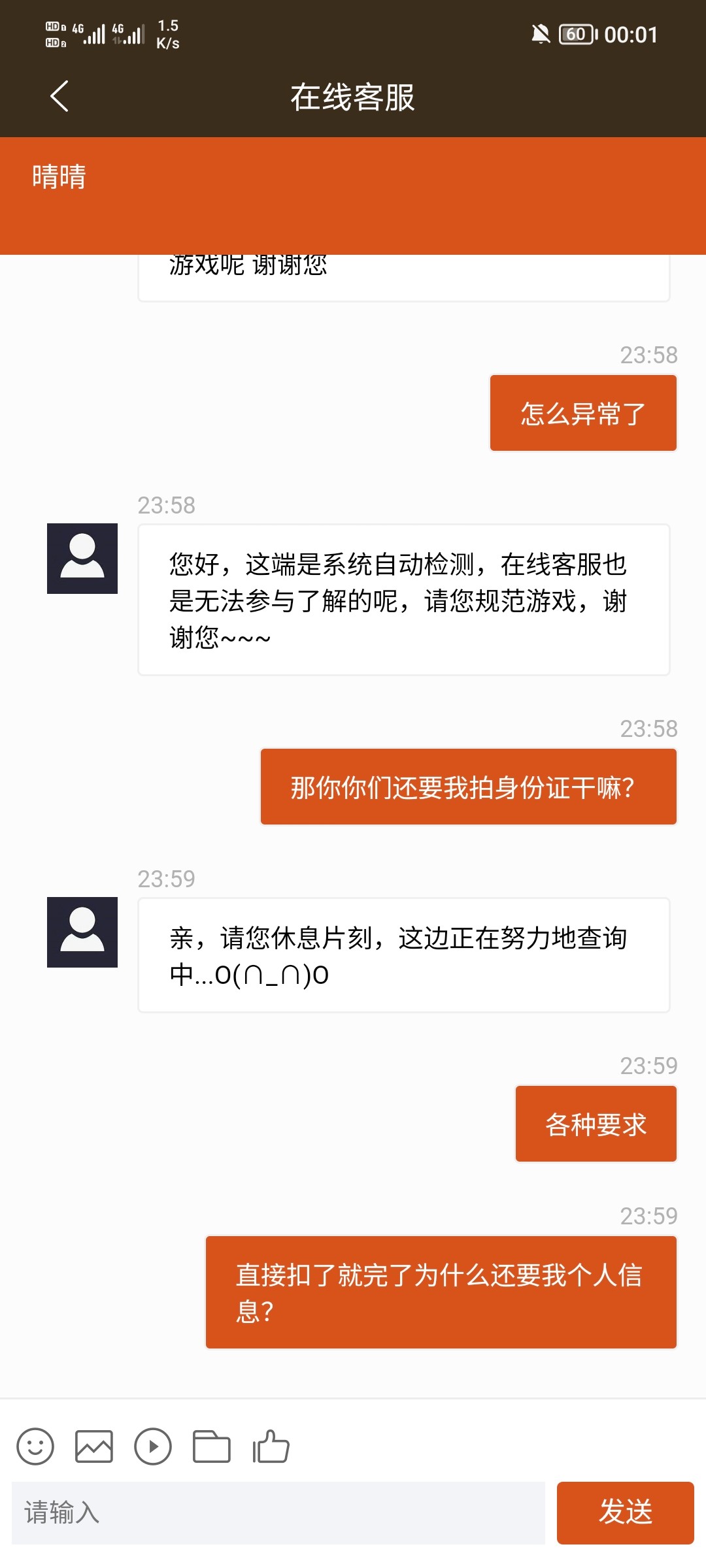 拍完手持说过一会退回账号 一直不退我就去问客服 直接来一句异常 老哥们避坑
