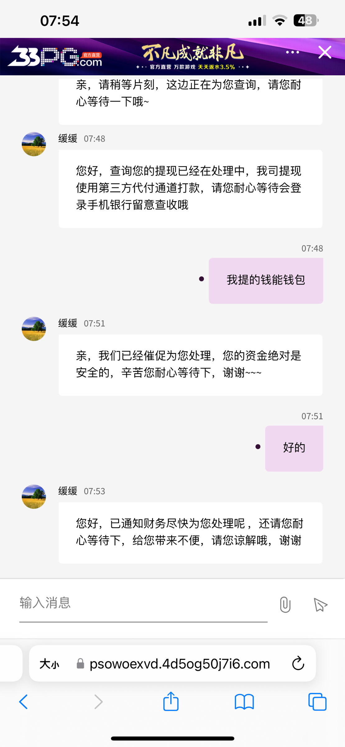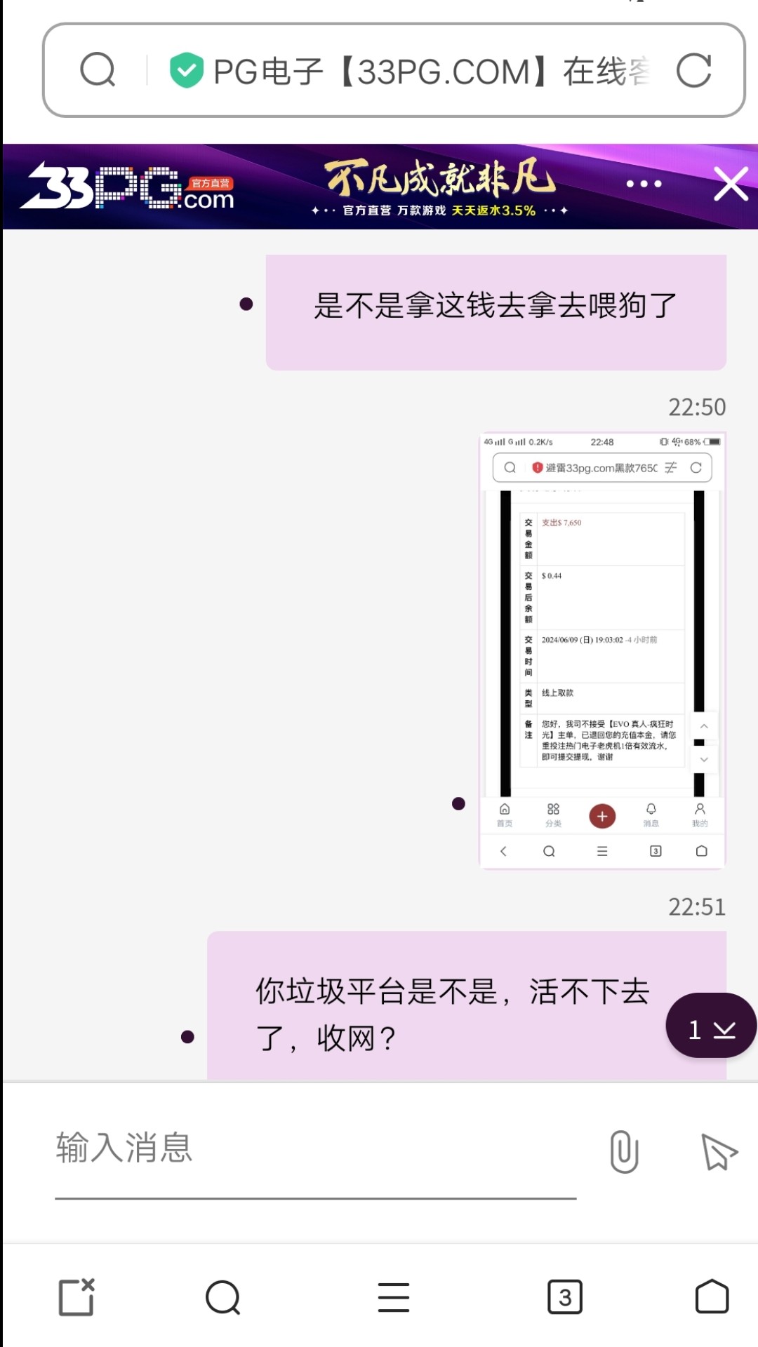 避雷33pg.com黑款7650元