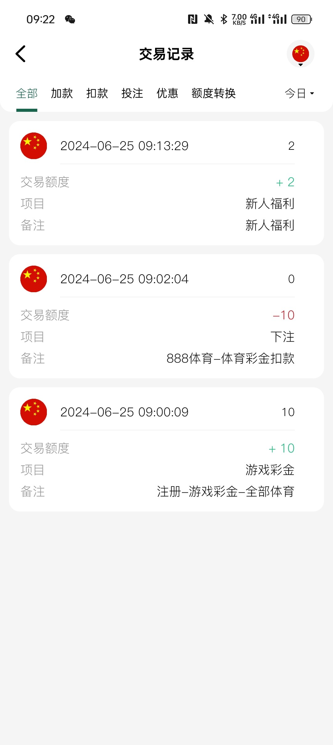 新用户注册秒10,只能玩365/888体育,具体自测吧切记勿充值。
