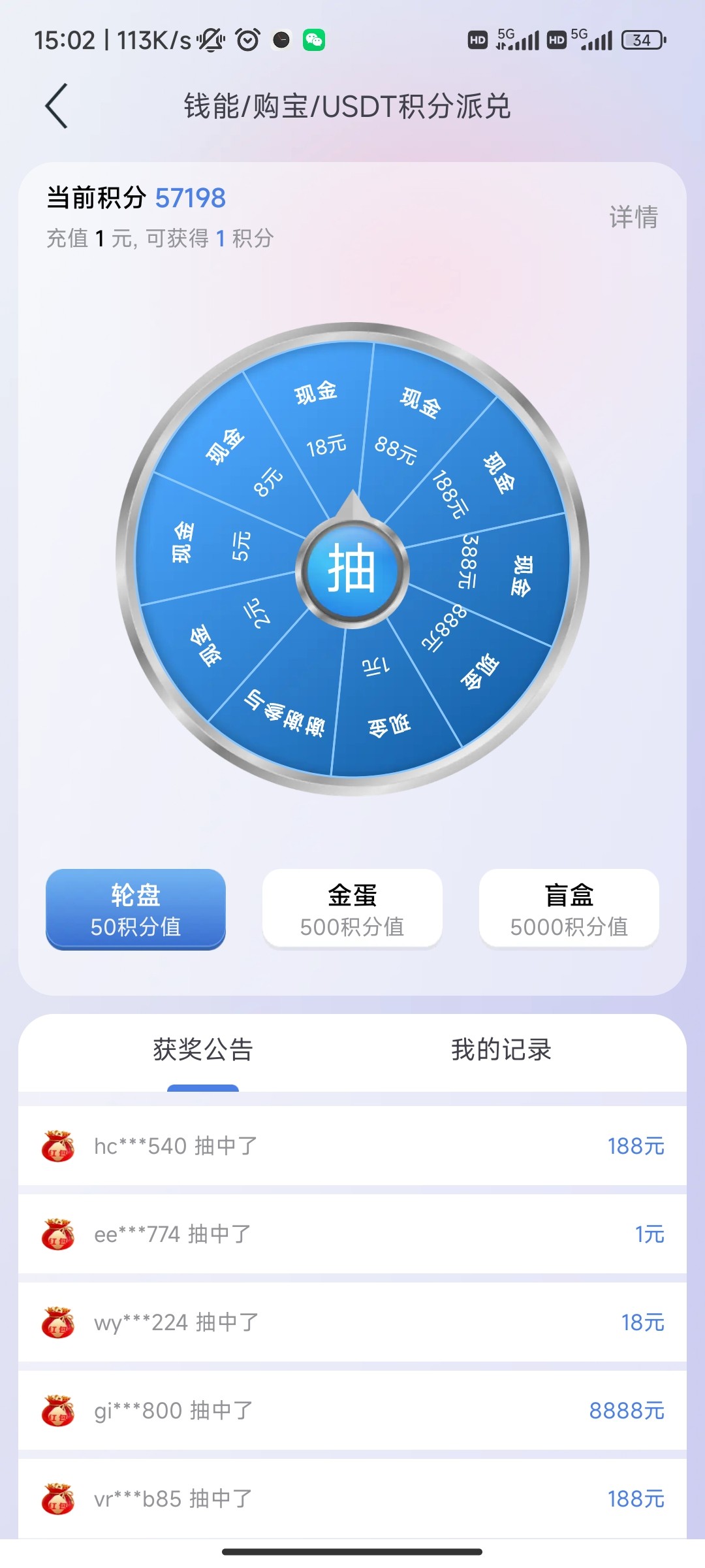 不知道是bug还是什么,好几个账号都送了。抽奖的彩金也派送到,也提现成功了。(抽5000积分真他妈没水,一直再接再厉)