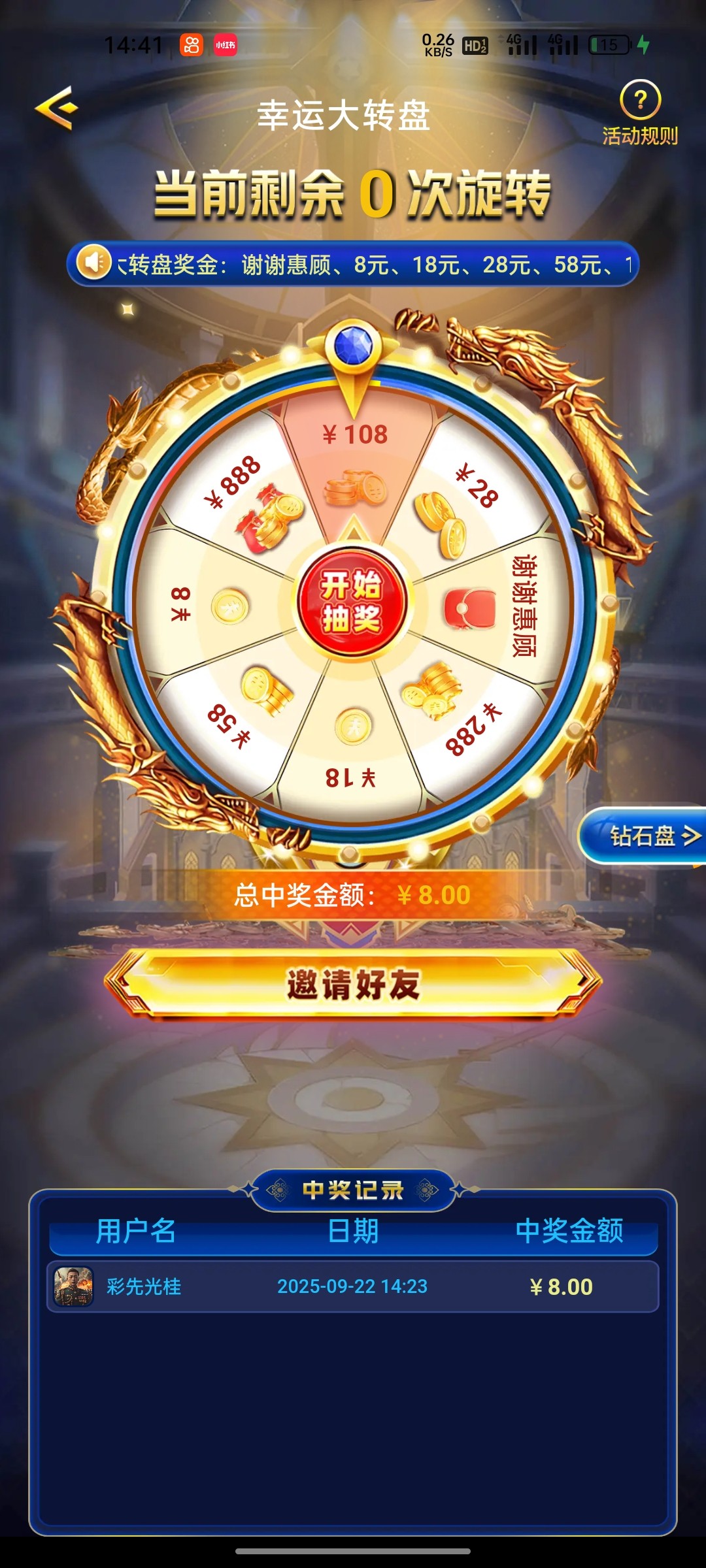 下载APP然后注册会弹抽奖出来,我抽到了8块,我朋友抽到58,只有新用户可以,老用户不能哦 地址点这里