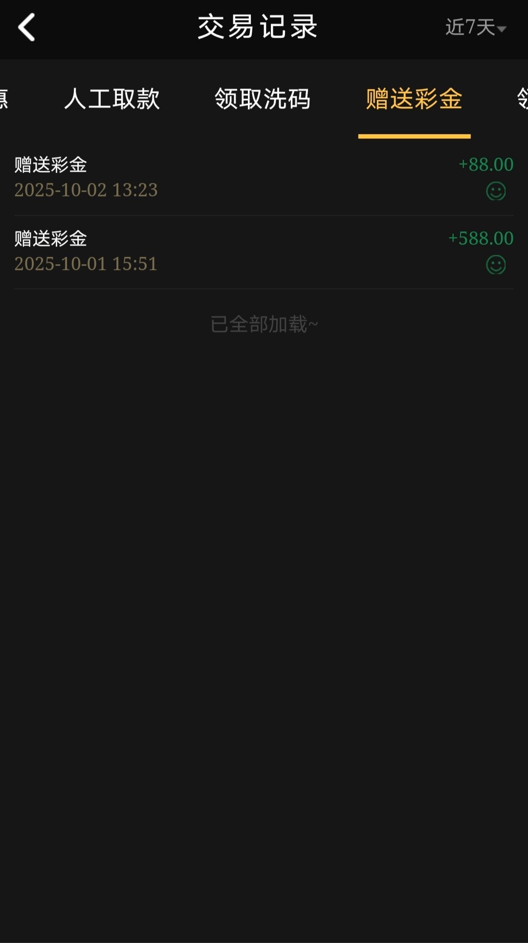登录就有,翻一翻聊天软件说联系赠送一份线下客服彩金,登录看了下送了676,心想还挺大方,一看明细只送了88 ,昨天给我送了588,上次充值是上个月1号 充值了100领取月彩金 。