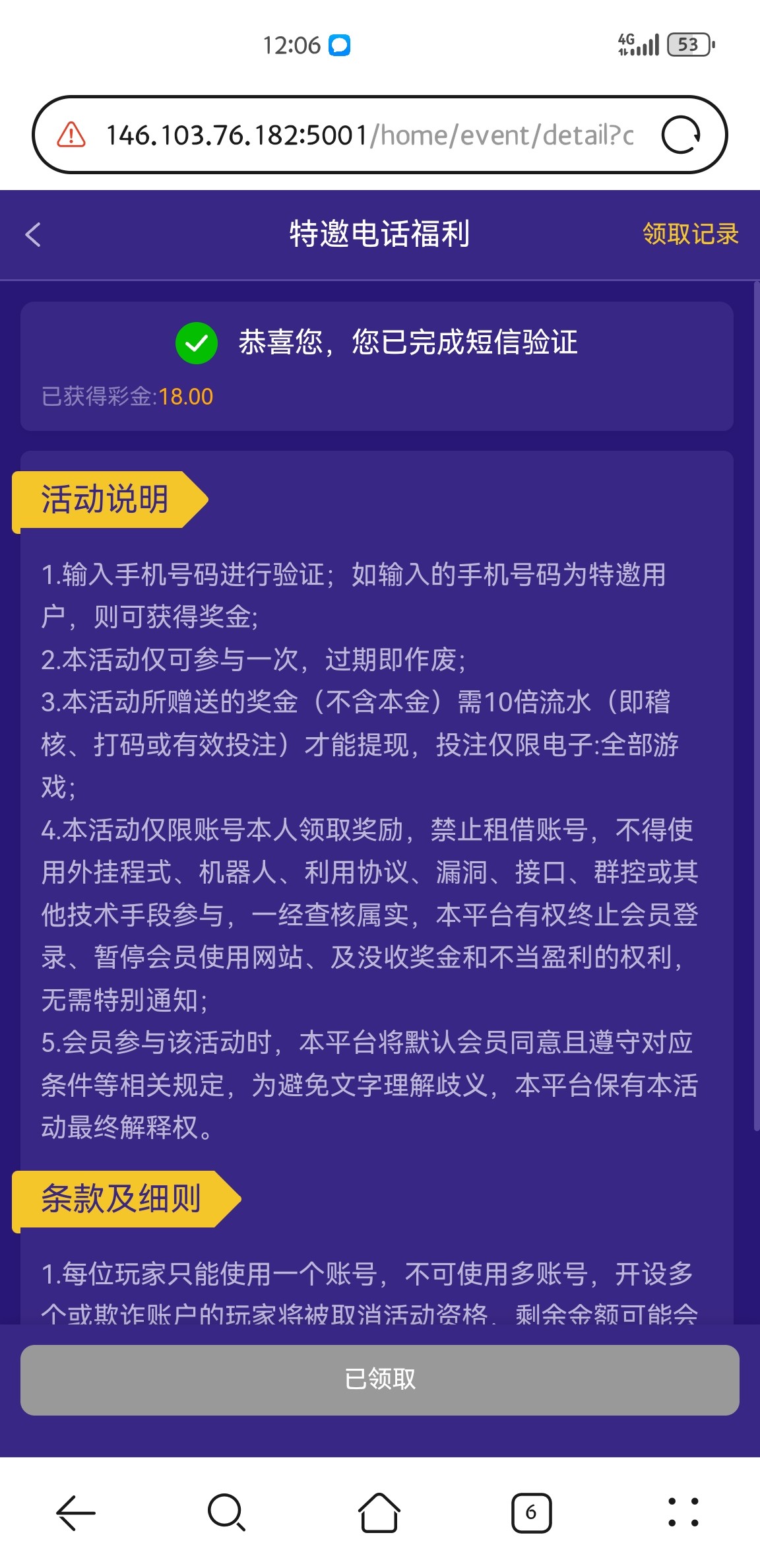 昨天我领了,进了赏金大对决一下就进关了,给了十几,后来突然又进了给了150流水还差好多我就先玩别的,后来去拉麻将本来流水都够了,也能取了,麻将怎么拉都不进,我直接4毛拉完130,一把没进,本来不服,后来服了