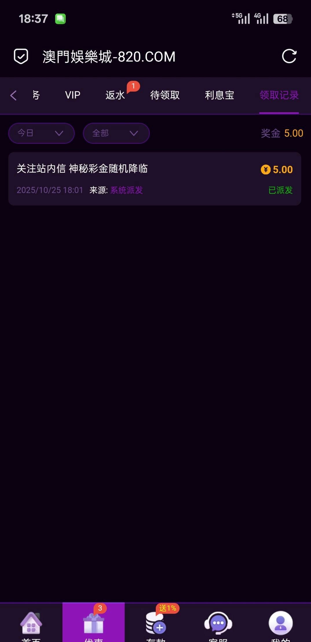 【澳门820】—✅—回归彩金