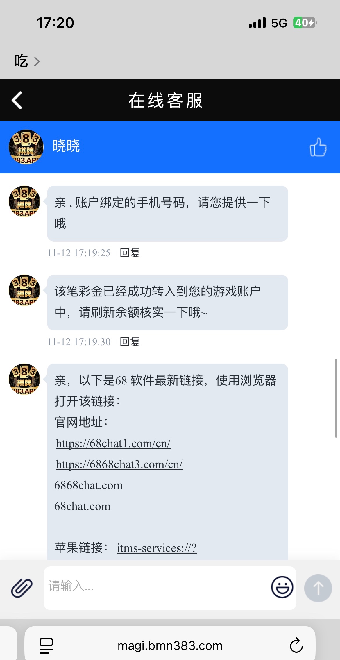接到电话找在线客服申请给了38