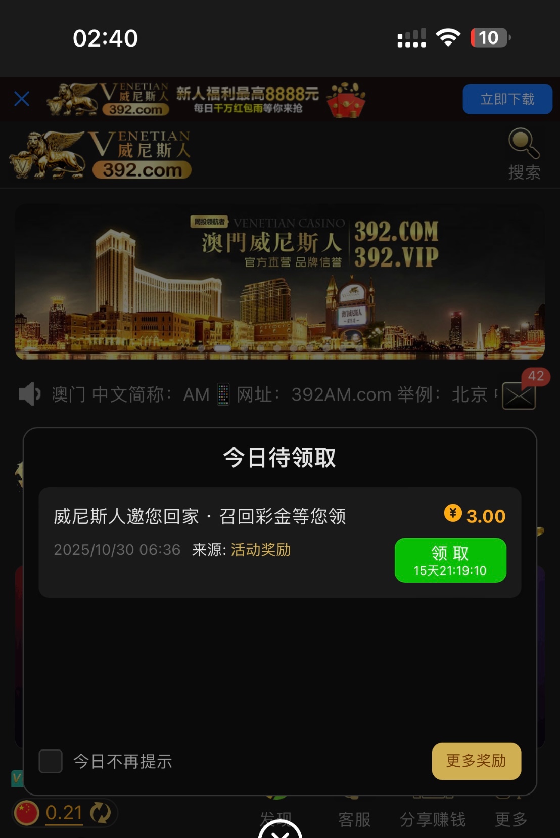 【威尼斯392】—✅—召回彩金