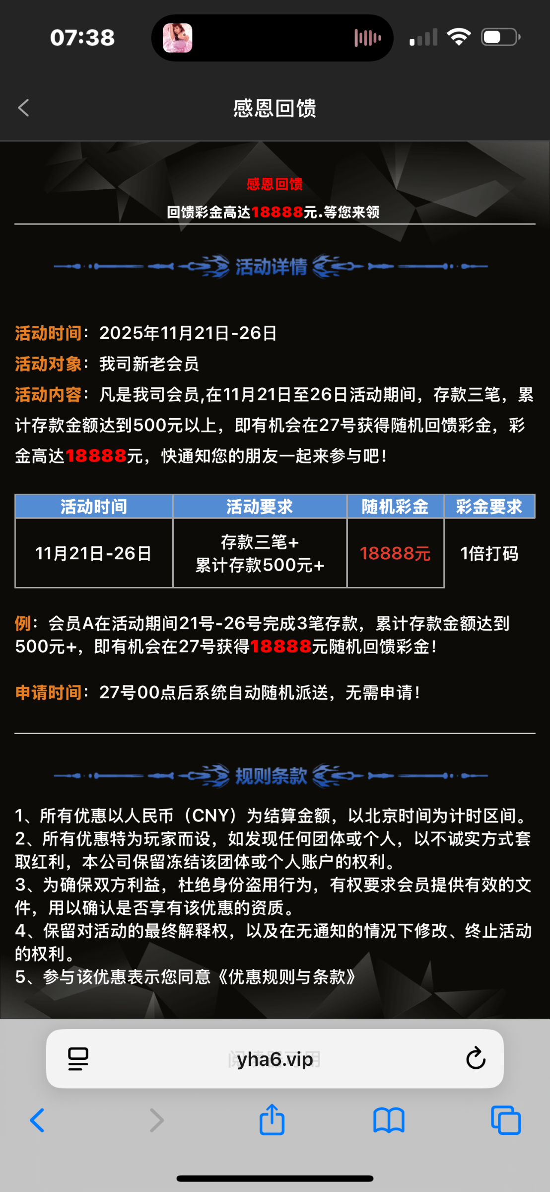 看图 要21-26号累计充值500 有米的自己去刷一下充值量 这个台子一般这个活动出来都送的蛮多的