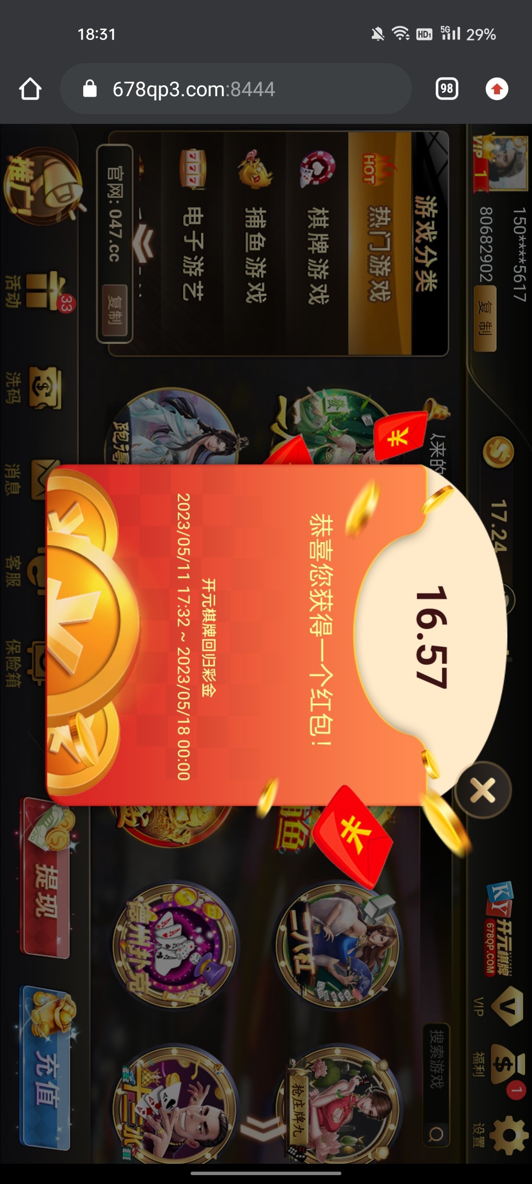 老用户登录看看有没有回馈彩金,大部分有18