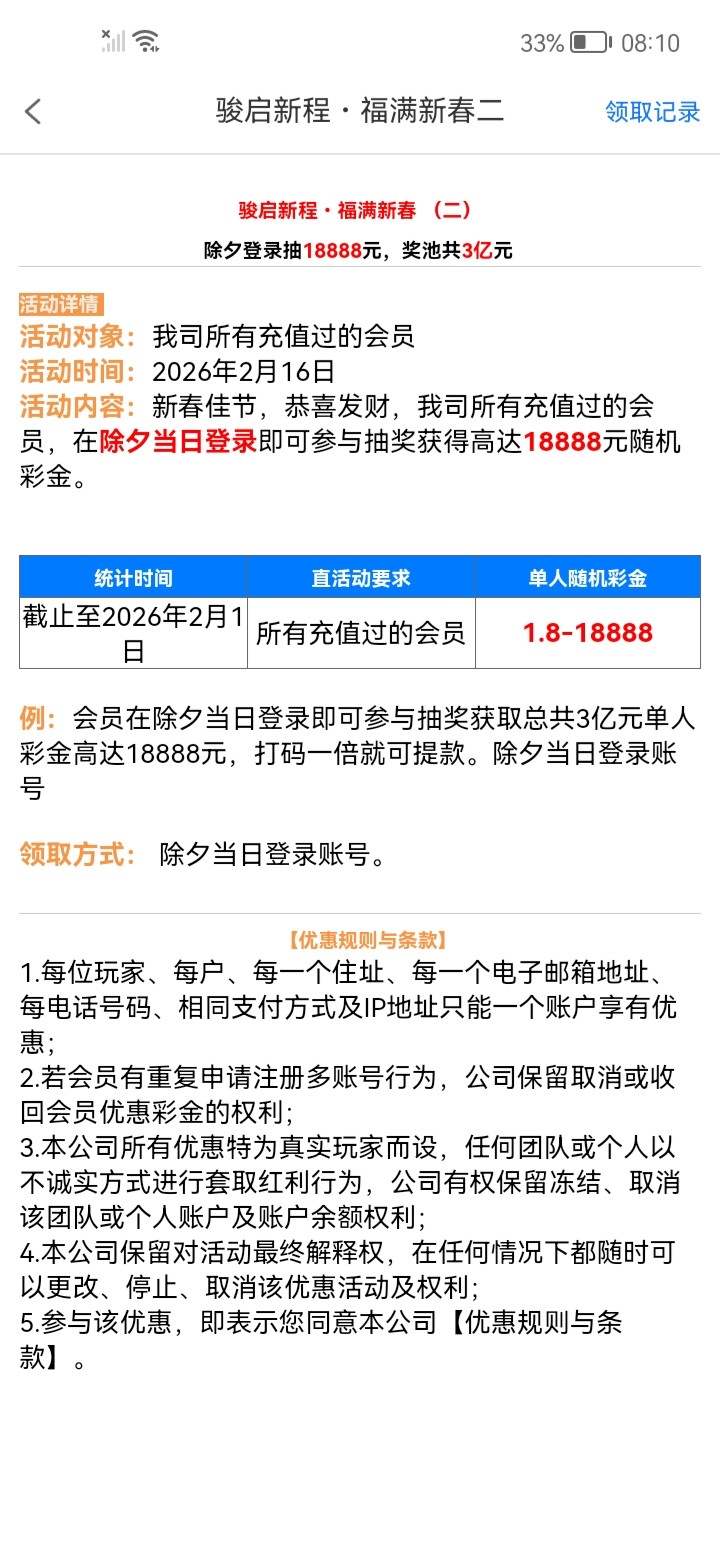 除夕登录彩金