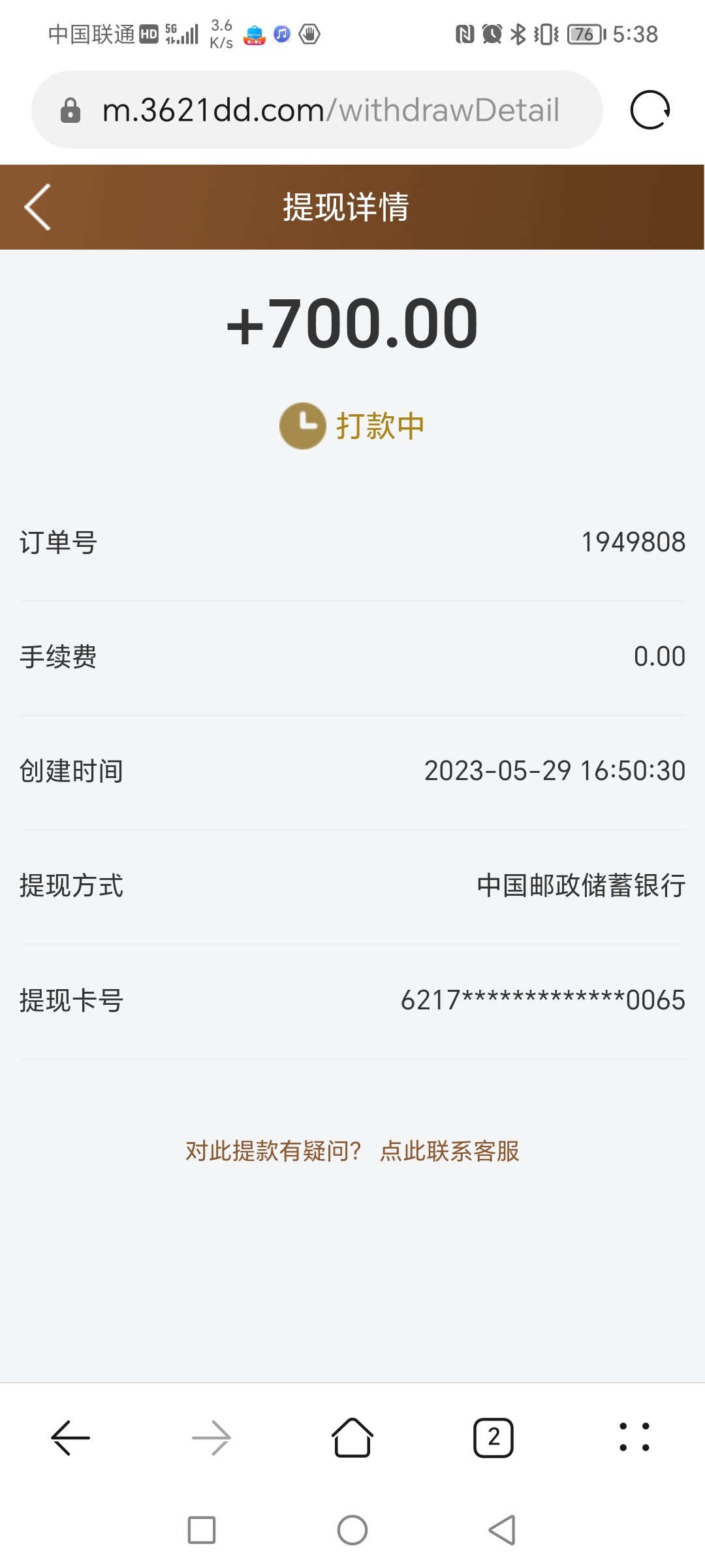 打款中就是稳的我上周俩小时才到,可以团个牛子吗老哥