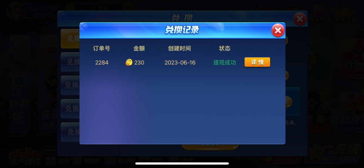又是到50梭哈  52到104 然后红黑先30 到133 然后压110中了跑路