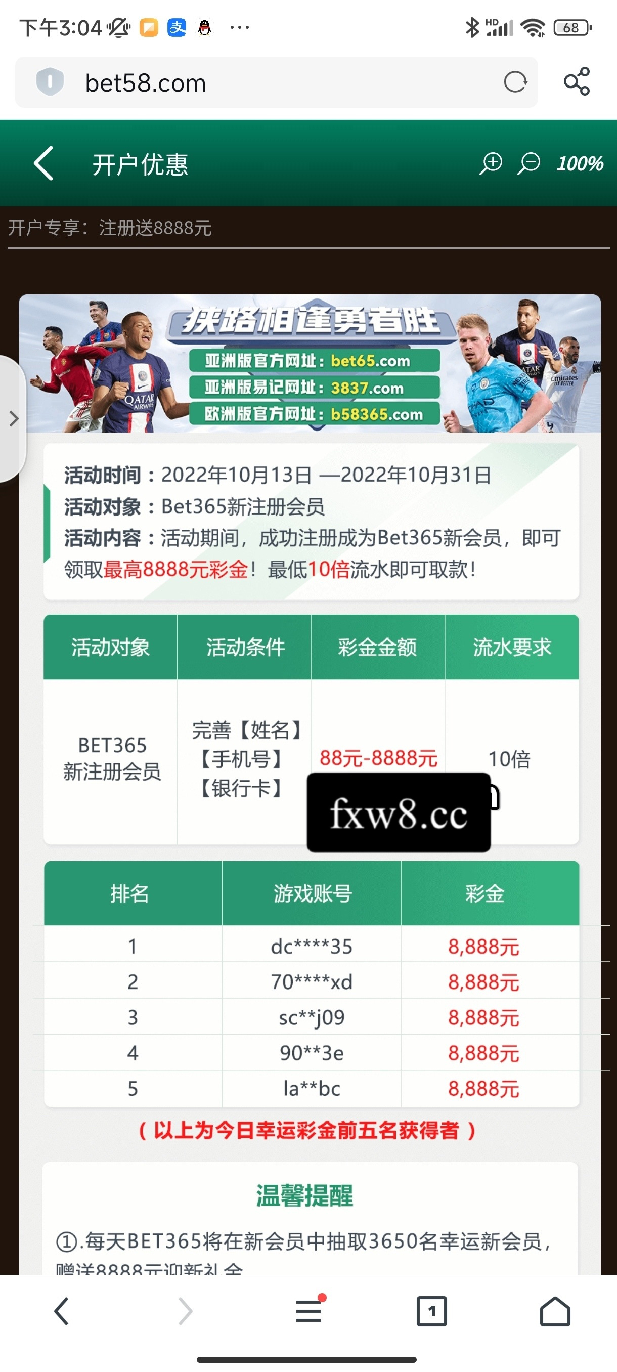 新用户注册绑卡一小时之内自动派送88彩金十倍流水,每天只有365个名额赠送,建议临晨去