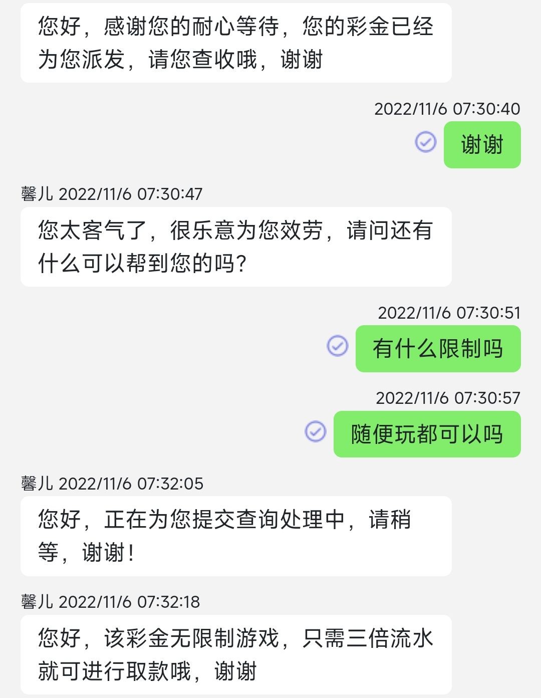 注册绑卡找客服申请开户彩金,说话的时候甜蜜蜜一点,尽量半夜申请人少。彩金三水,不限制游戏。