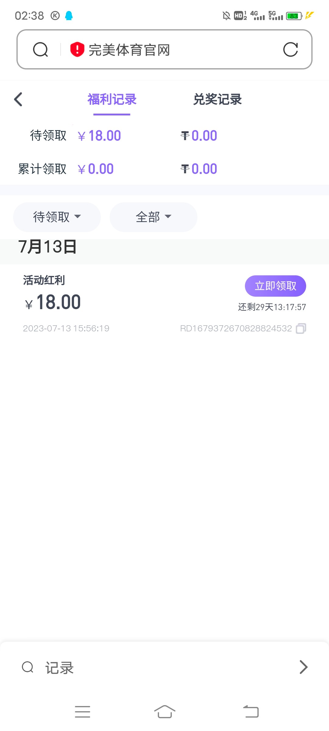 前天凌晨注册的今天才送,在福利中心里面领18上100提现到账了